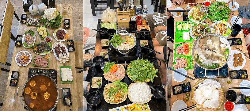 Một set lẩu gà lá é ở đây dành cho từ 2-6 người và giá tiền cũng dao động từ 199.000.000 VNĐ – 499.000.000 VNĐ. Ngoài ra quán cũng phục vụ thêm cả lẩu Thái chua cay và 1 vài món ăn vặt đi kèm.